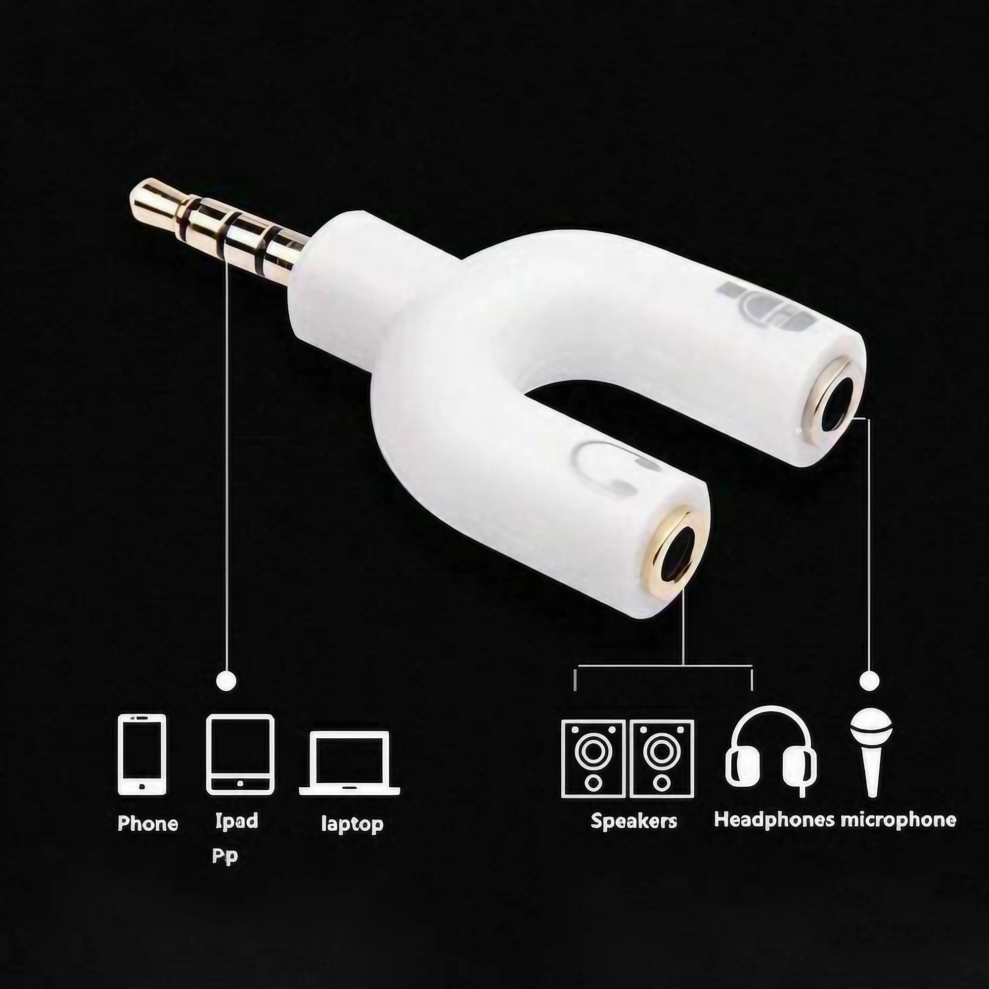 U Shape Splitter Adapter - For Collar Mic Connect With Mobile And For Headphone.
